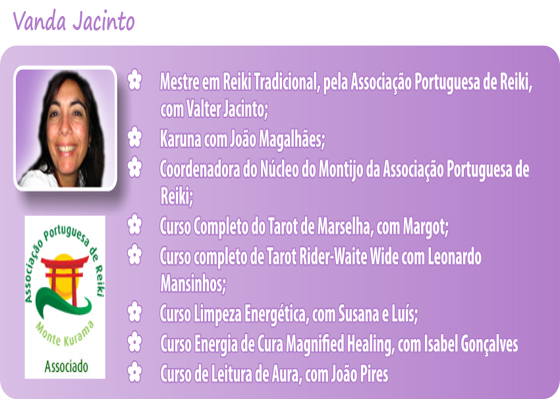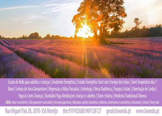 Sobre Lavanda Centro de Bem Estar É um Centro pensado para o seu Bem Estar: Escola de Reiki para adultos e crianças, Karuna, Magnified Healing, Alinhamento Chakras e Limpeza Energética, Tarot com os Anjos, Regressão a Vidas Passadas, Astrologia, Leitura da Aura, Meditações, Runas, Cristaloterapia, Yoga Crianças e Adultos… |